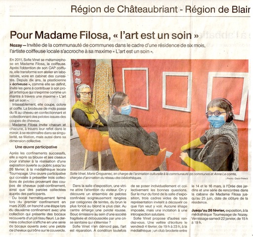 Sofie Vinet - Madame Filosa - Les Pelotes Confinées - exposition - Nozay (44) Collection 1 vue d'expo Nozay, janvier 2022